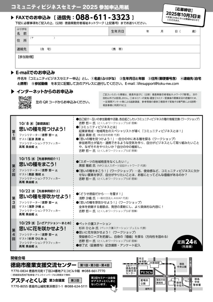 ※第2回セミナーは会場が「アスティとくしま」となっておりますので、ご注意ください。