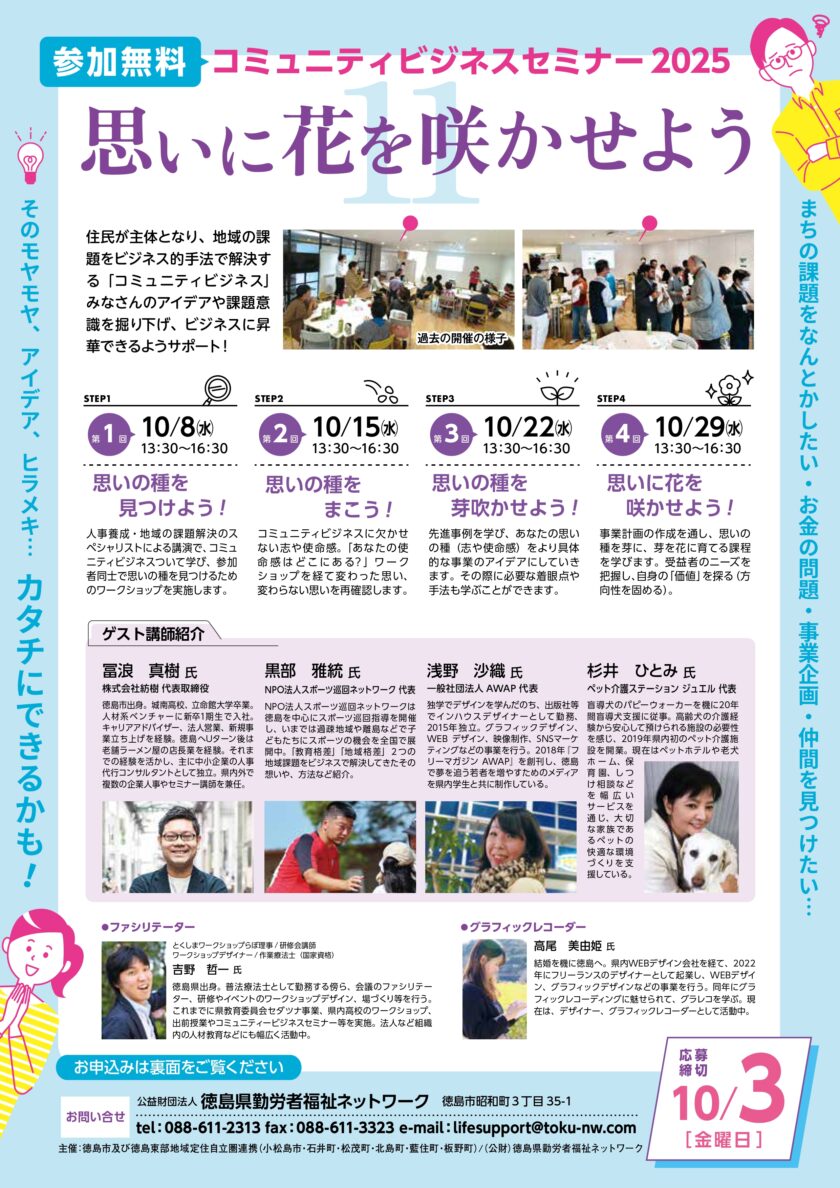 興味を持つ方が、一歩前へ踏み出せるきっかけとして、また、参加者の人的ネットワークを拡大し、地域コミュニティ活性化につなげられるようセミナーを企画しました。