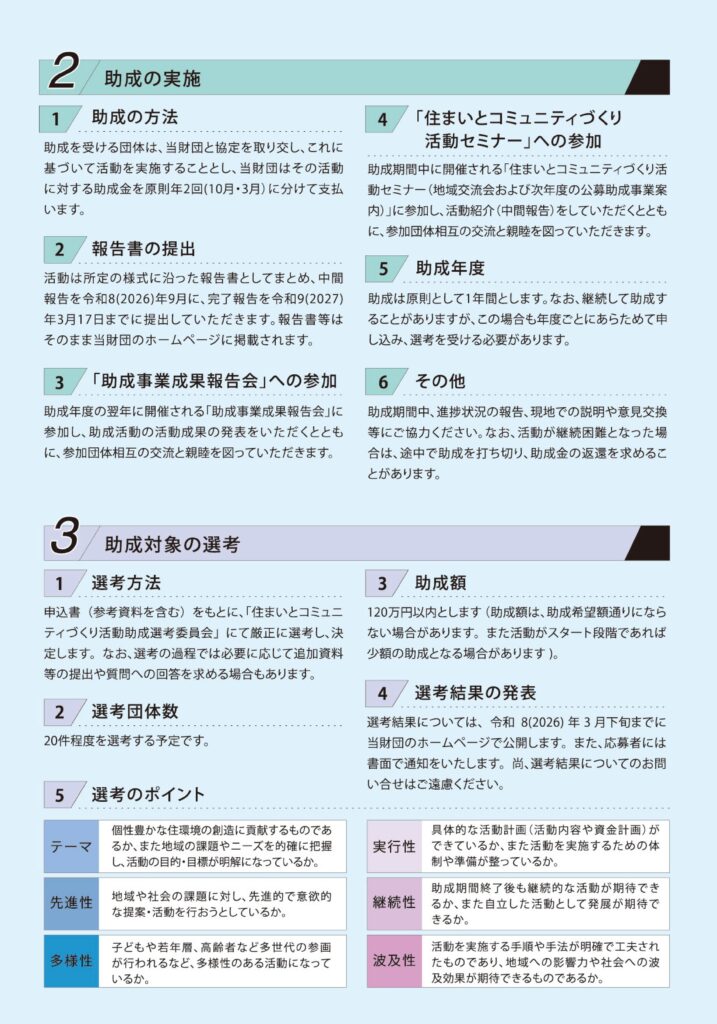 令和8(2026)年度は、「今日の住まいとコミュニティに関する多様な社会的課題に取り組む活動」に助成を行います。